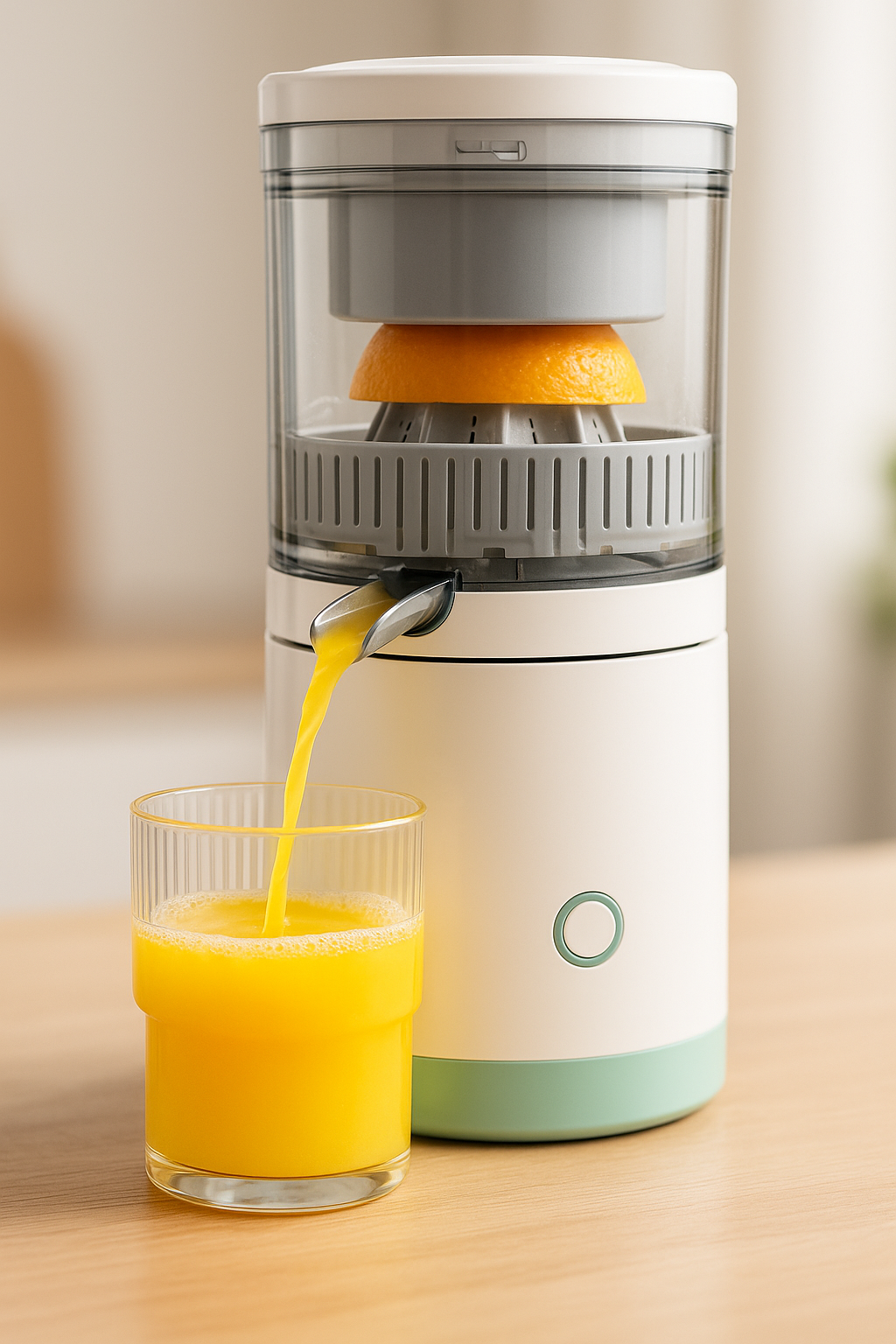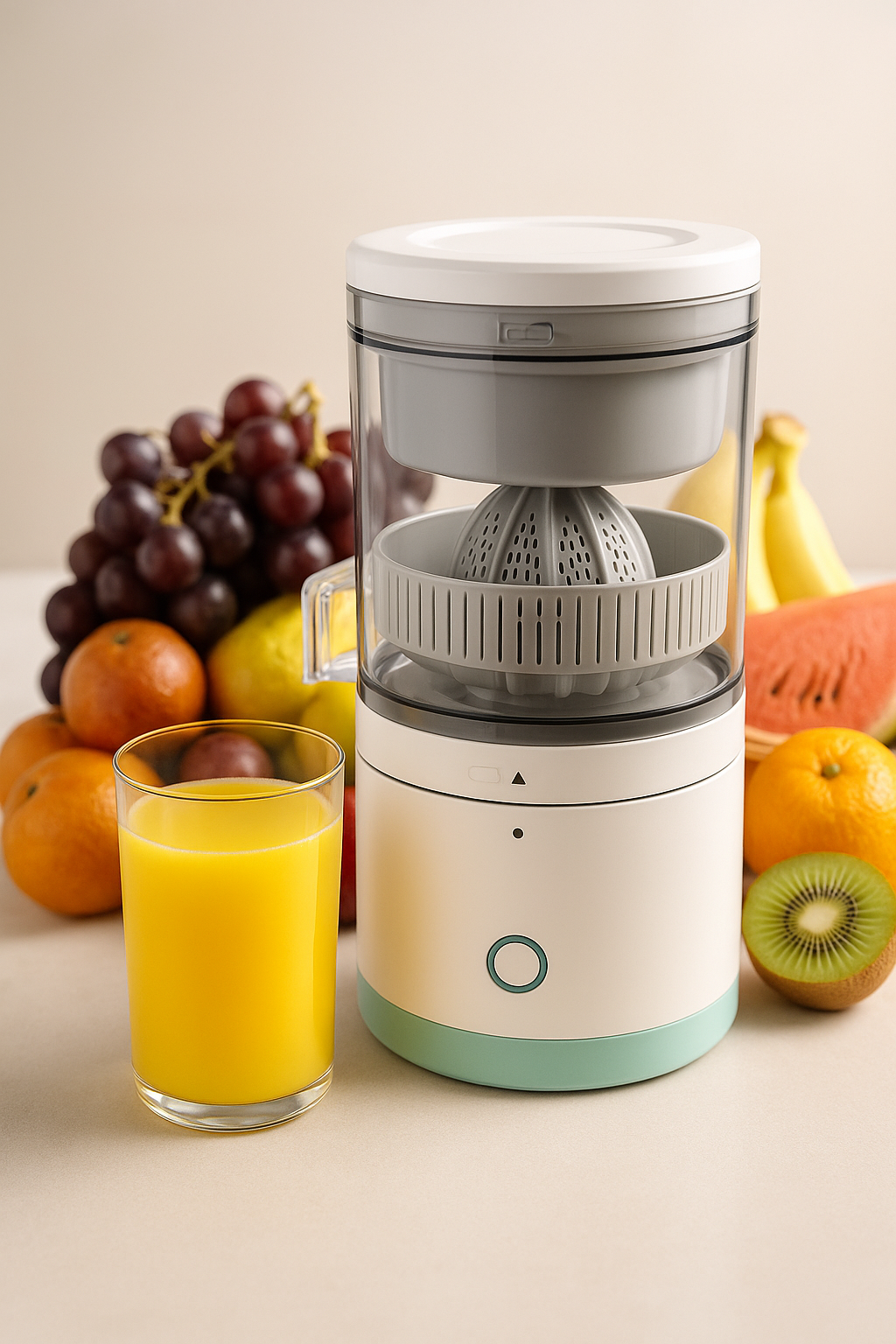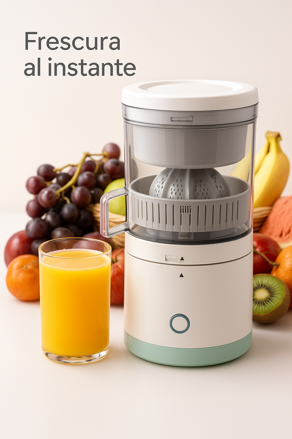 👉 ¡Lo sabemos! Por eso este exprimidor es inalámbrico, recargable por USB y portátil. Úsalo donde quieras, sin cables ni enchufes. Y su diseño luce bien en cualquier espacio.
